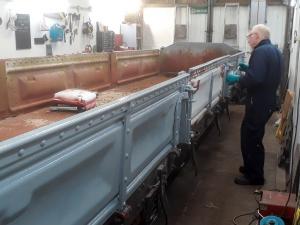 11. & 12. The other DZ wagon is in the Paint Shop being repainted L&B goods-grey by Jim Pounds and Geoff Long. Numbering and lettering will be added in time for the forthcoming gala when this wagon will feature in an L&B mixed train.