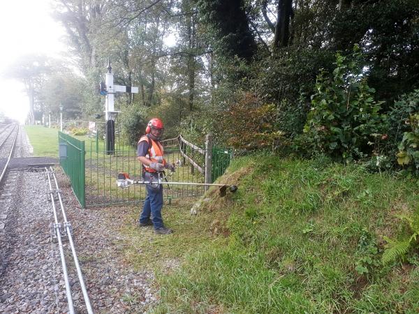 13. Keith Lamprey was busy strimming around the grassy areas adjacent to the woodland walk path and the hedge bank by Mooreland's path.