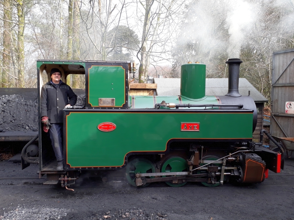 6. AXE, the L&BR Trust’s own steam loco looking resplendent. Today's Fireman is Steve Castle from the Isle of Wight.