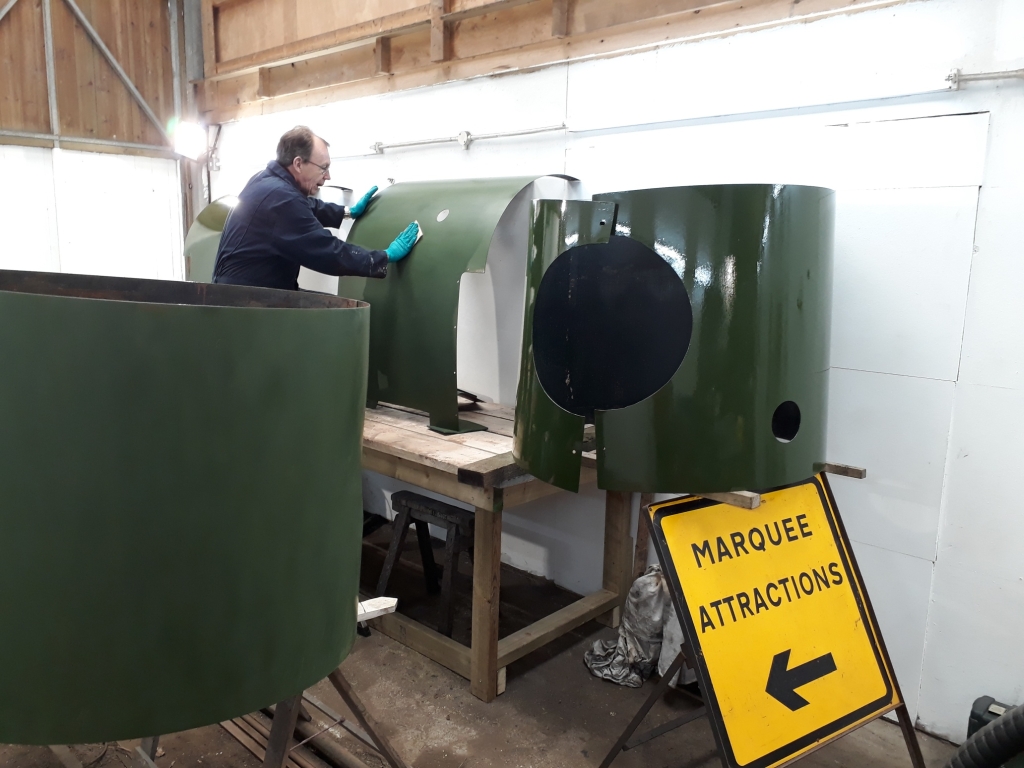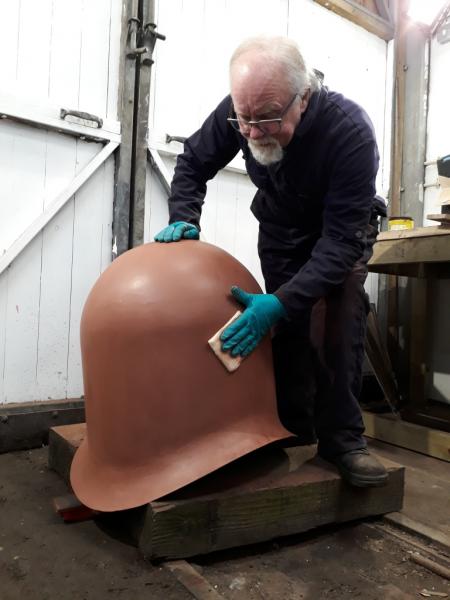 10. Jim Pounds uses a tacking cloth to rub over the dome, now ready for a coat of green paint.