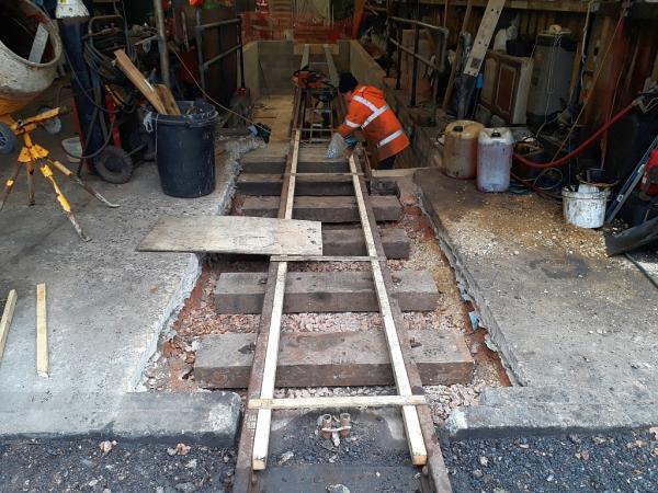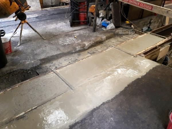 8. And after. The gang mixed many loads of concrete to infill and build up the concrete floor here just before the new enlarged inspection pit.