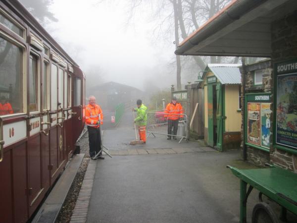 2. Some of the volunteers tidying up and preparing the platform for today's trains and visitors...