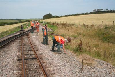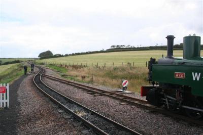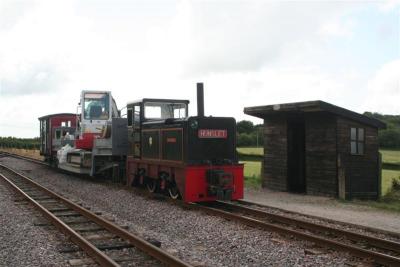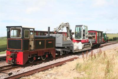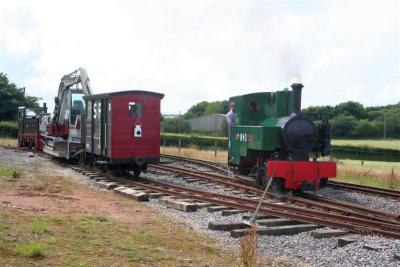 12. HEDDON HALL and works train, carrying tools and the excavator, was shunted into the transhipment siding during AXE's run-rounds.