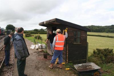 17. HEDDON HALL with the works train and repositioned shelter at Killington Lane.