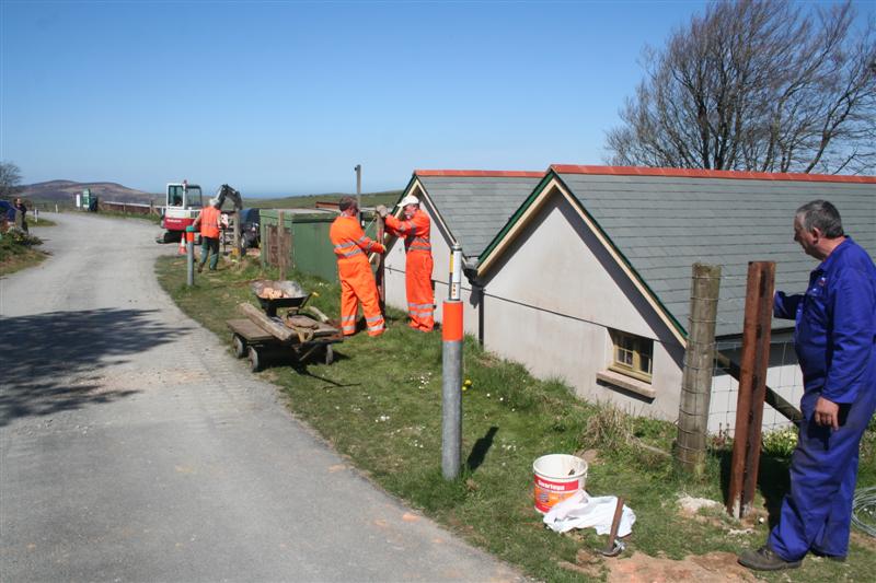 5. Some SR concrete fence posts are installed along this fence line. Martyn Budd checks the alignment of these posts.