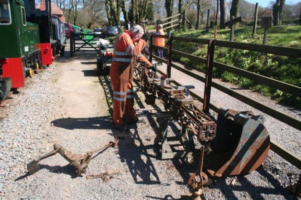 13. Graham Bendell assists with the creocoting with Maffei steam locomotive SID behind.