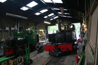 4. In the shed LYD rests after the hectic Gala workings before its return to North Wales. SID awaits its next turn of duty on the passenger train.