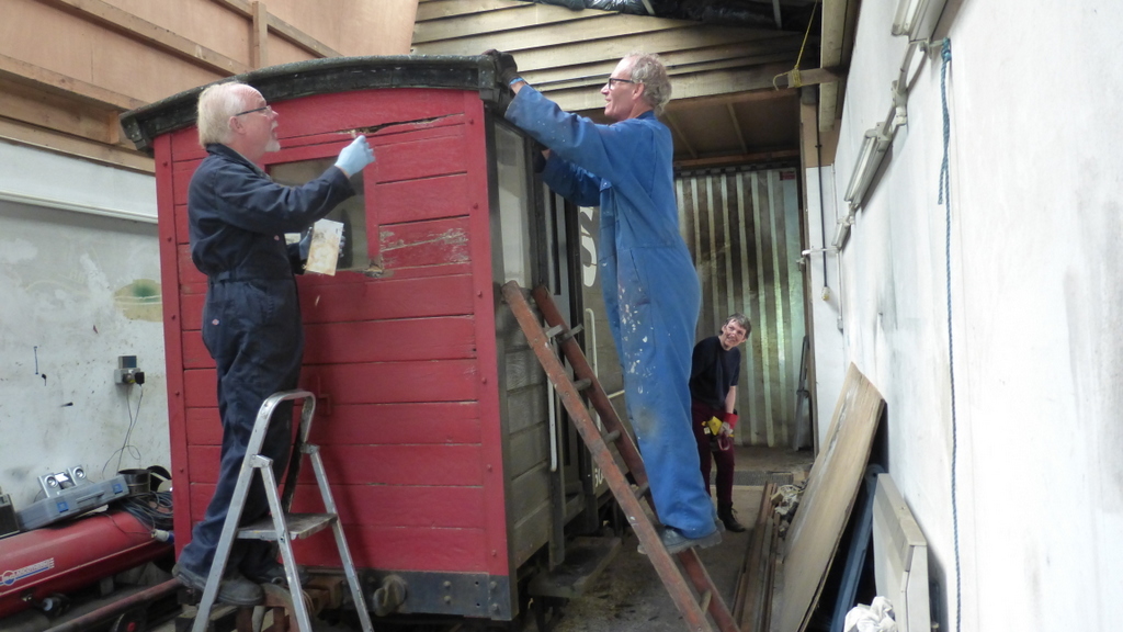 1. Inside the shed, Jim Pounds had some help today with the restoration of the brake van. Everyone else was outside!
