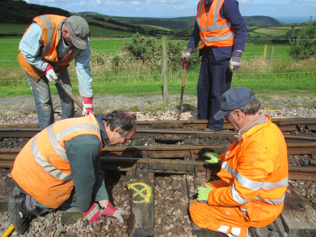 The track gang walked the length of line today shovelling ballast away from the sleepers identified as needing replacement.