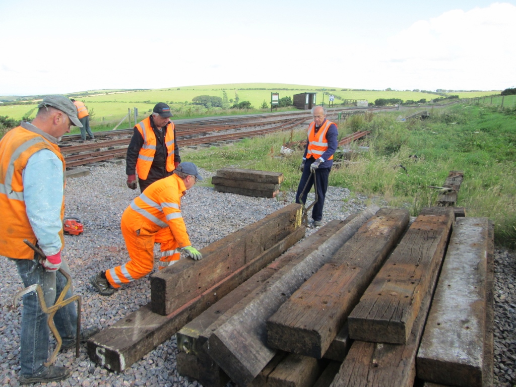 3. A recent delivery of standard-gauge crossing sleepers have been earmarked to replace ten worn sleepers along the line. Naturally these sleepers need to be sawn in half for our purposes.
