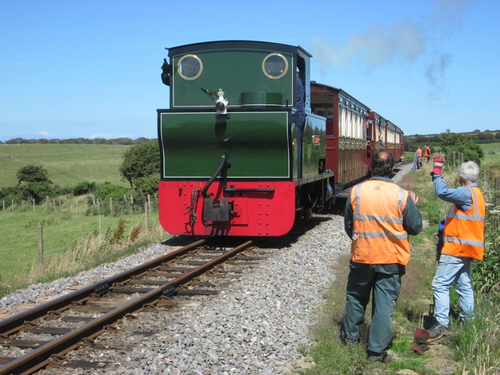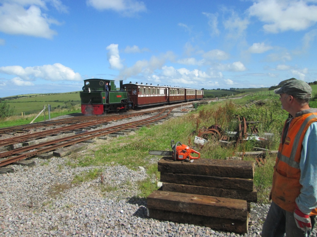 4. Visiting volunteer Martin Steel was helping out with the track gang today. Martin watches as ISAAC arrives at Killington Lane in the morning sunshine.