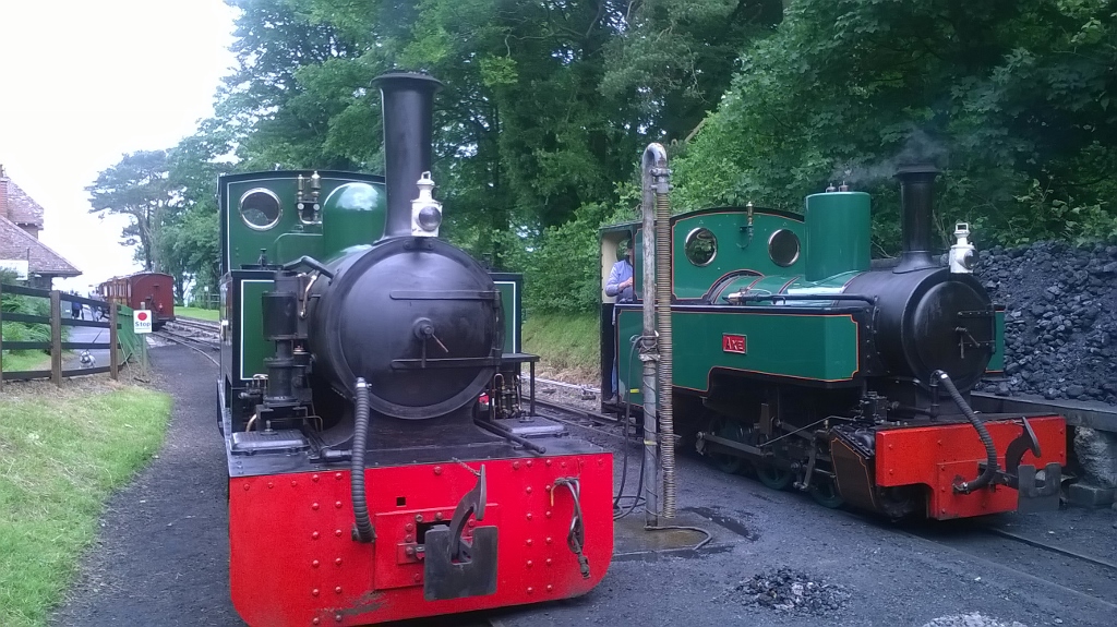 5. Two of our resident locos - ISAAC and AXE - outside the shed at Woody Bay.