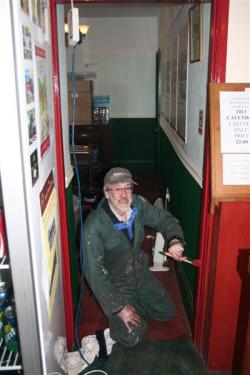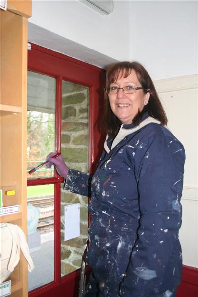6. ....whilst wife, Lindsay paints the inside of the single door of the booking office.