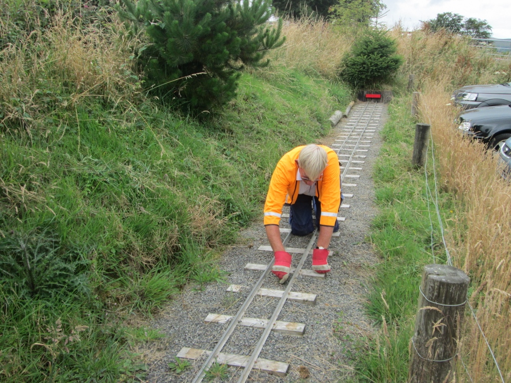 9. Les Squance was de-weeding the miniature railway - by hand ...