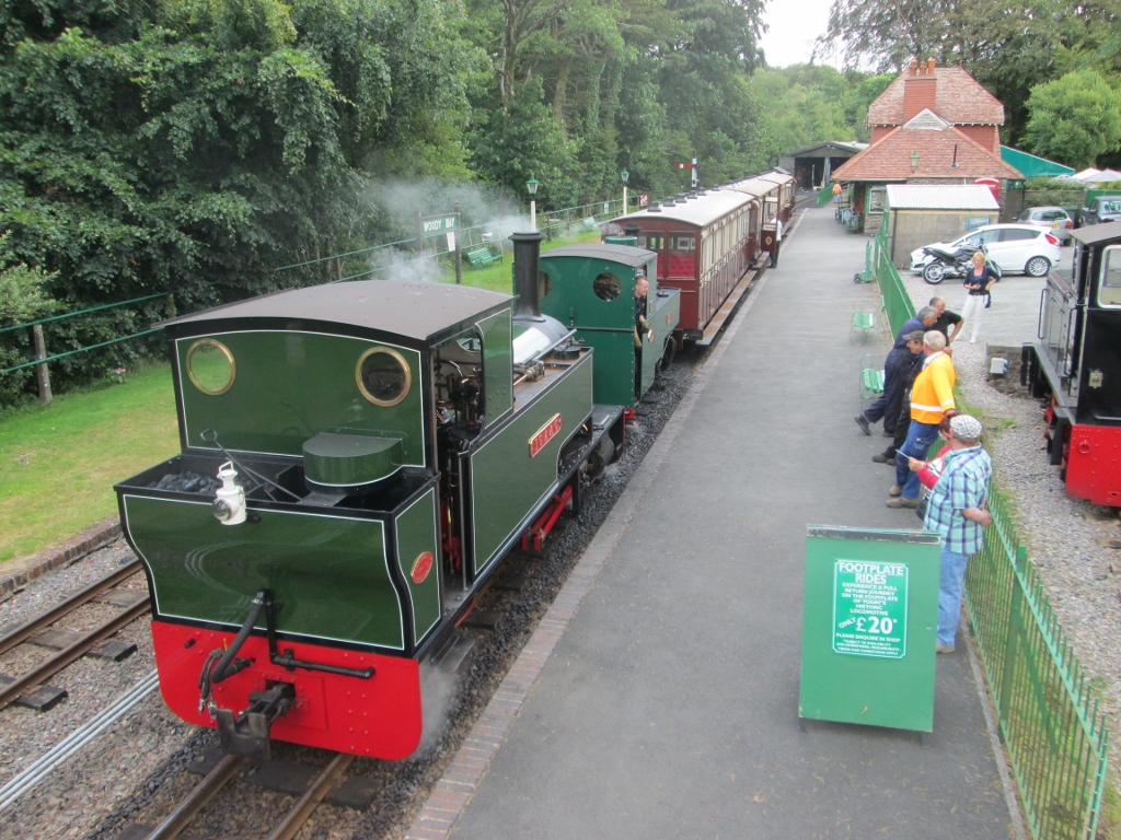 4. AXE was on duty today, seen here from the woodland, passing the headshunt. It was another busy day with many visitors enjoying their ride and the day at Woody Bay.