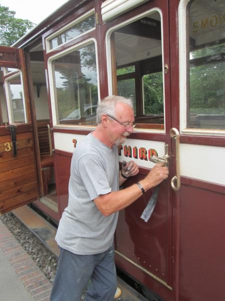 14. Trevor Buck polishes the brass door- and grab-handles on the heritage carriages.