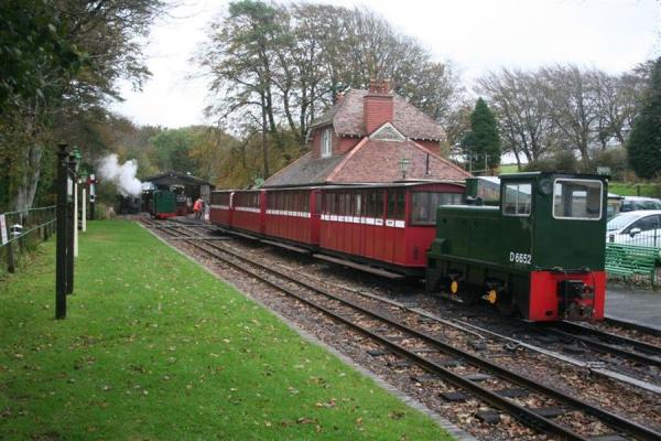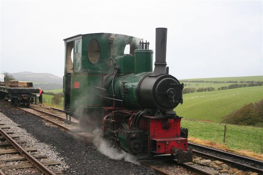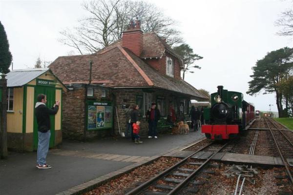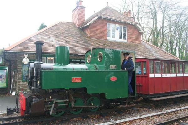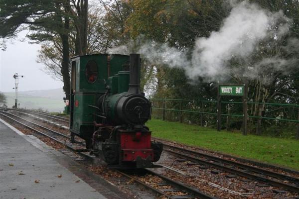 1. AXE hauls the train into Woody Bay Station.