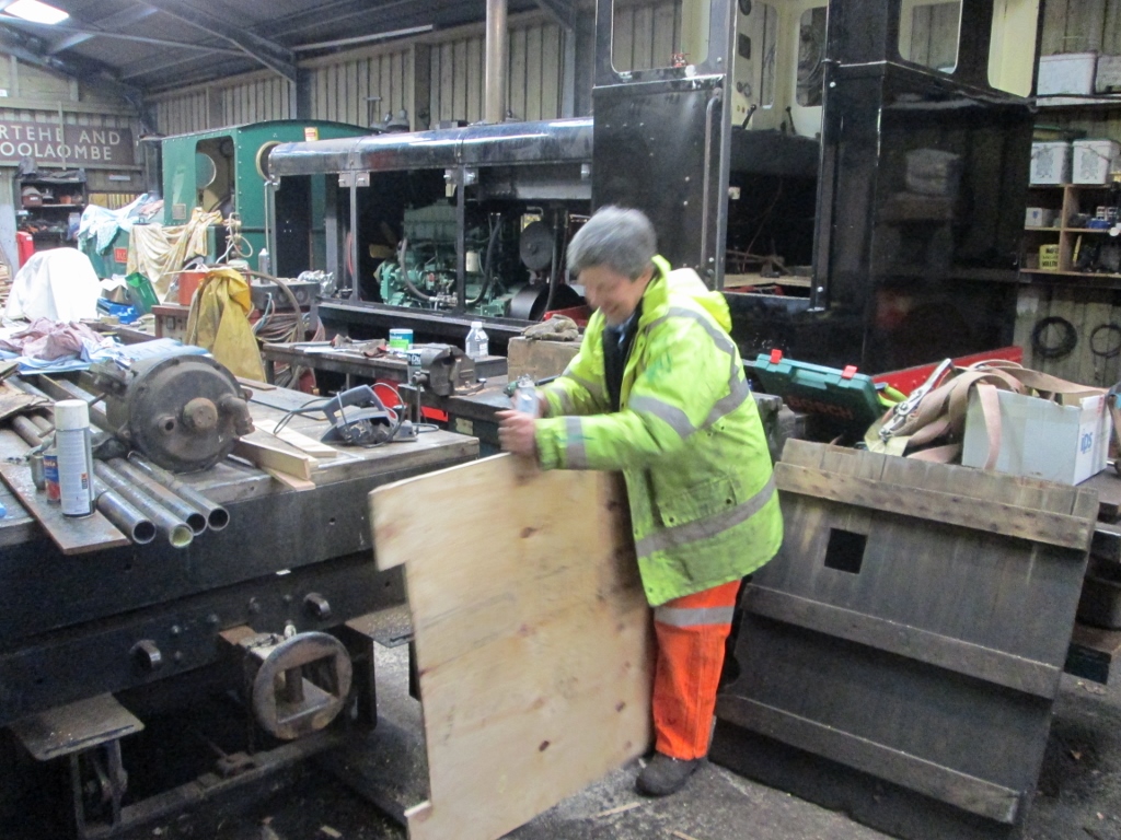 So it was a variety of 'indoor' projects for the Thursday Gang volunteers, although today's train crew were the ones to get wet, particularly during the run round moves at both Woody Bay and Killington Lane.