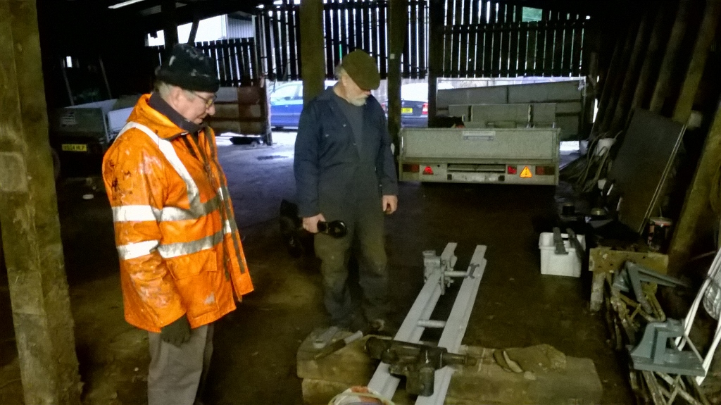 9. At Rowley Moor Farm, Don Newnham begins to trial fit the mechanisms onto the rail built signal post. This signal is being constructed in advance of our extending the railway.