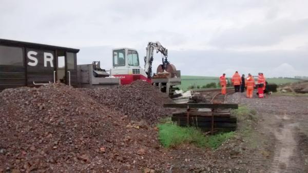 11. 12. & 13. Other Members of the Thursday Gang assisted with a works train down at Killington Lane tidying up the old sleepers lifted last weekend, whilst Martyn Budd unloaded the old ballast from the South African DZ wagon.