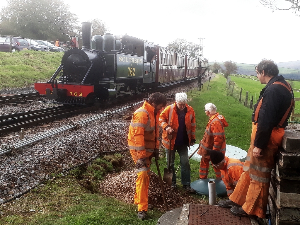 8. LYN and the train passes as the gang progresses the digging.