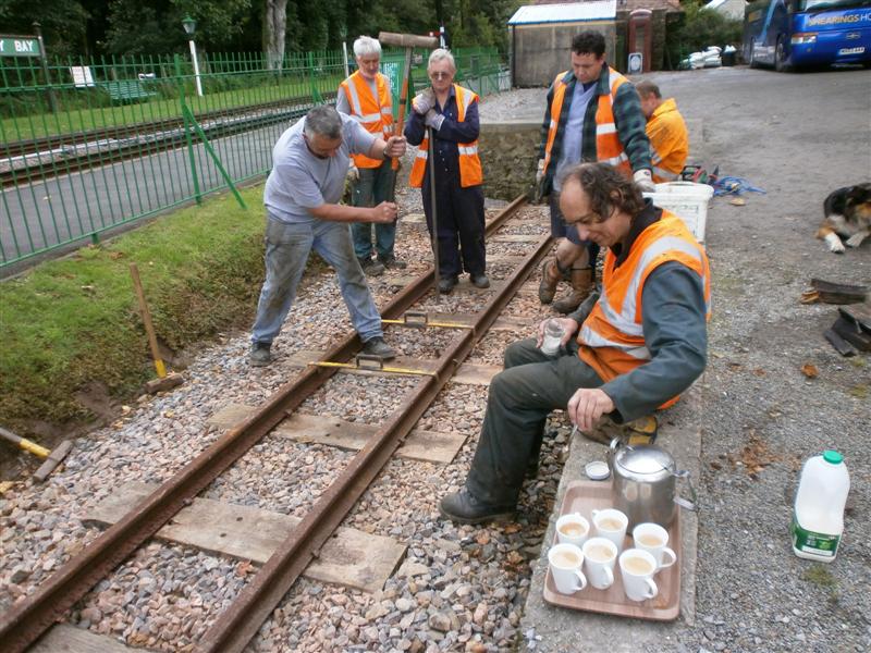 It was back to permanent way work for the Thursday Group volunteers today. Two jobs on the track at Woody Bay were worked on today, whilst many of the visitors watched on with interest.