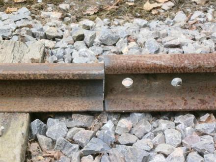 15. There was only time to do the one length today so the old rails were cut to butt up with the new rails (right). This view clearly shows the difference to the larger 50lb. weight rails. A temporary fishplate was later attached.