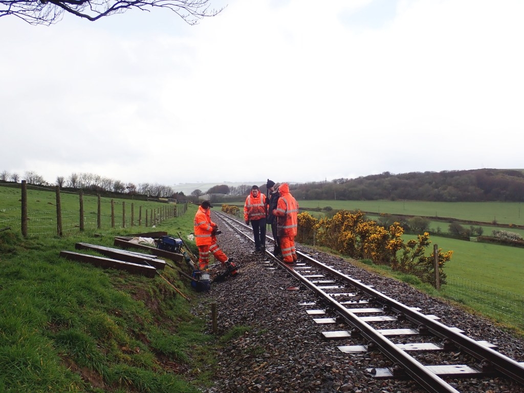 Four photos from Roger Bye of the work on the track today. Weather was appalling - rain and sleet!