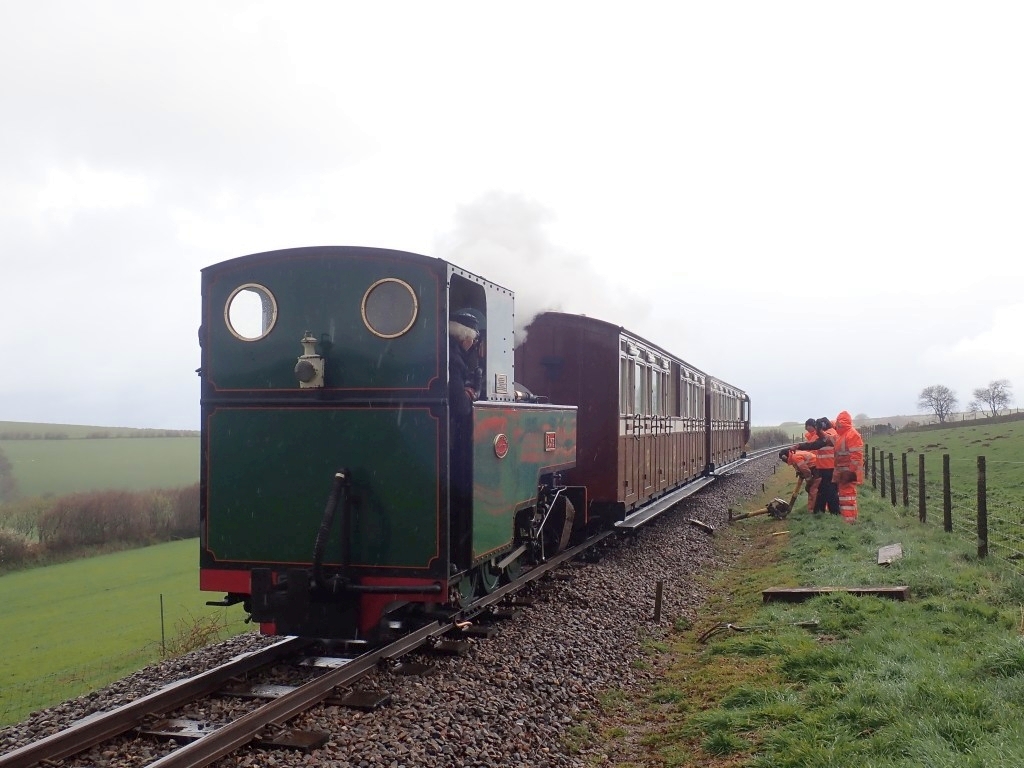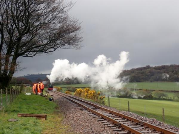 This week the weather has been April Showers but up here on Exmoor it's cold enough to be hail showers. Even some snow had fallen overnight around the surrounding hills. However all this didn't prevent the L&BR from operating as usual for today's visitors. There was as much work as ever at Woody Bay and along the line.