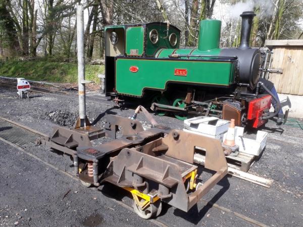 4. AXE at the coaling stage alongside a PW trolley with Carriage No.17's bogie undergoing its annual overhaul.