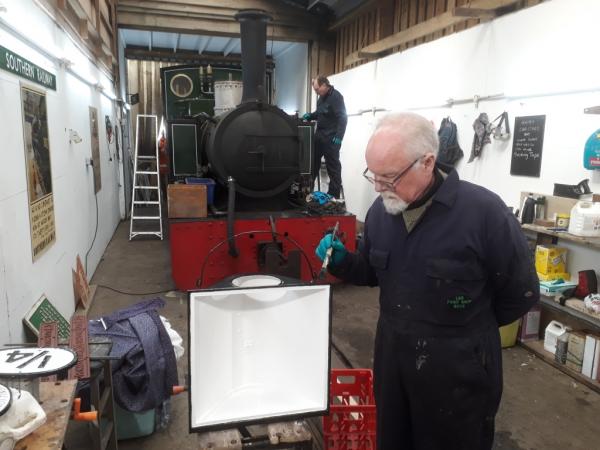 6. Paint Shop Boys: Jim Pounds finishes off painting the shunt-limit lamp, whilst Barrie Cann completes touching-up ISAAC's tanks.