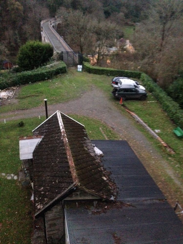4. An unusual view of Chelfham Station from the top of an overhanging tree prior to its cutting down. (Photo Chris Bull).
