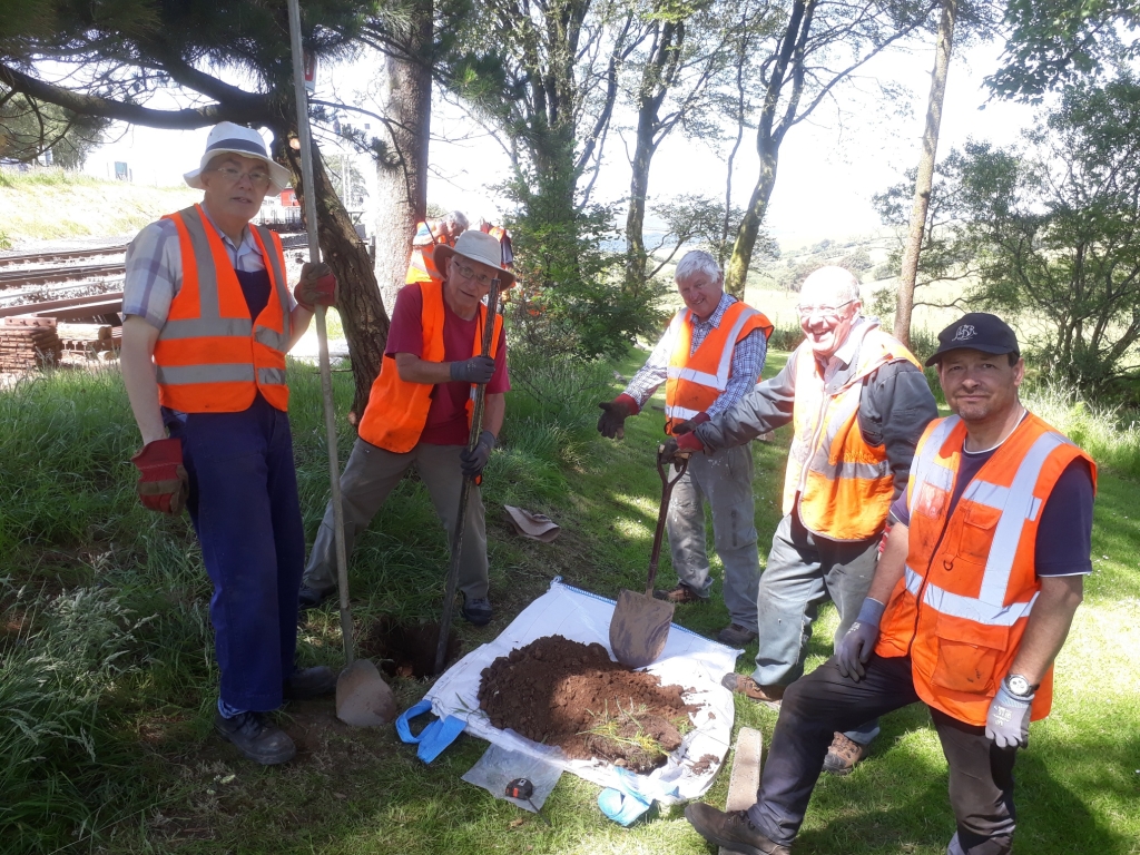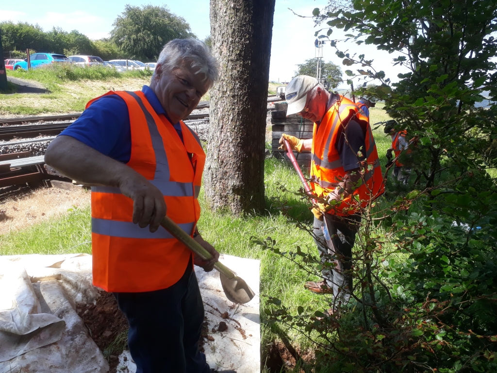 The main job today was for the Thursday gang to dig yet more holes! This is for a new fence line from the down platform by the trees to the woodland path using the standard SR style concrete posts and wire.
