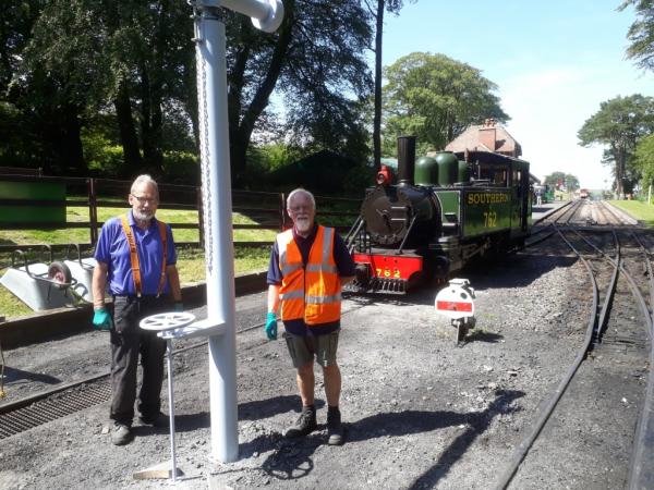 12. ISAAC's footplate crew: Fireman John Heys, and Driver Graham Bridge are revealed as the back cab plate has been removed making it more comfortable for the crew during this hot weather.
