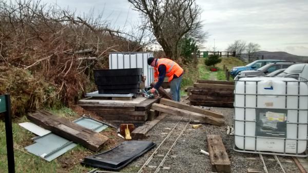 With a fourth heritage carriage entering service this year, General Manager Martyn Budd realised that the increased train length and existing fencing would limit access for photographers and viewers. So the tasks here today were to extend the platform surface and erect post and rail fencing to protect those so intent on their photography that they run the risk of falling down the grassy bank at the back of the platform. It is not unknown for members of staff to suffer this fate!