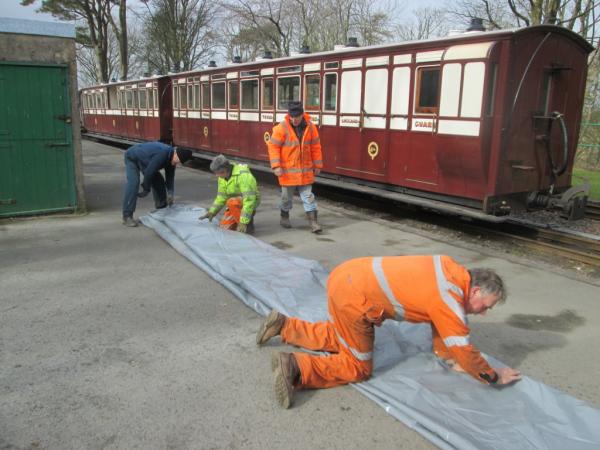 3. The next task was to remove the covers from Carriages 16 and 7. The covers having served their purpose by protecting the carriages from the worst of the winter weather.