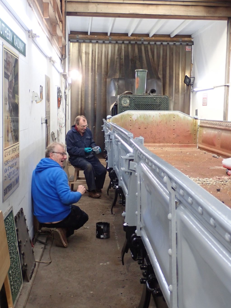 3. In the paint shop Phil and Barrie were concluding the painting of the DZ wagon.