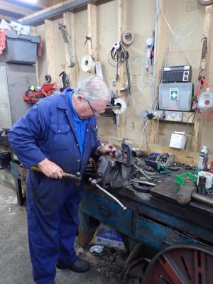 4. & 5. In the workshop Peter was making parts for the vacuum braking system on Carriage No.5, while John was fitting them.