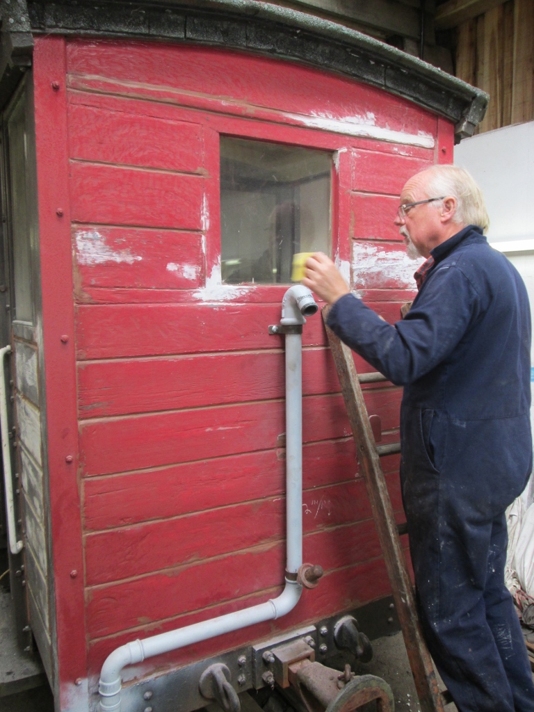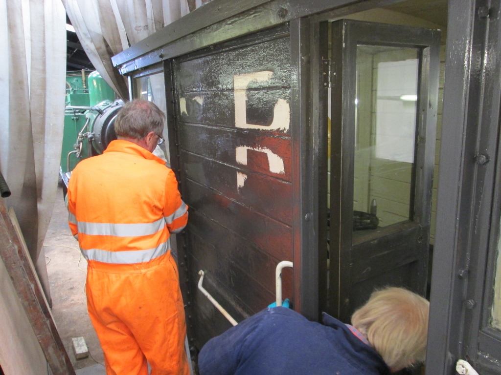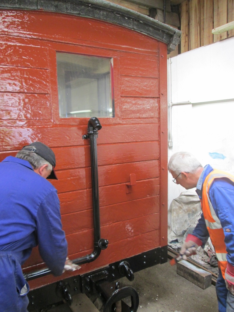 5. ... while Roger Bye and Martin Williams fix sealant on the brake van, prior to repainting. The van will be in service next week for a footplate experience day, so it's all hands on deck to finish off the refurbishment and repainting.