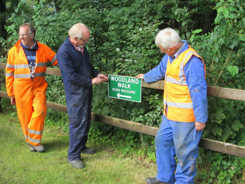 12. Still time for some odd jobs, as Martin, Jim and Roger install the latest sign to help advertise and encourage visitors to use the woodlands, and spend more time appreciating the delights of Woody Bay station and its environs.