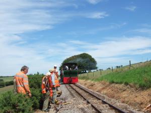 21. Out on the track, four Daves, assisted by Roger and Kevin for variety, continued the sleeper replacement programme. It was hot work today under the sunny blue skies but another six sleepers were replaced.