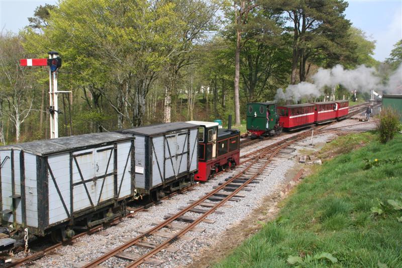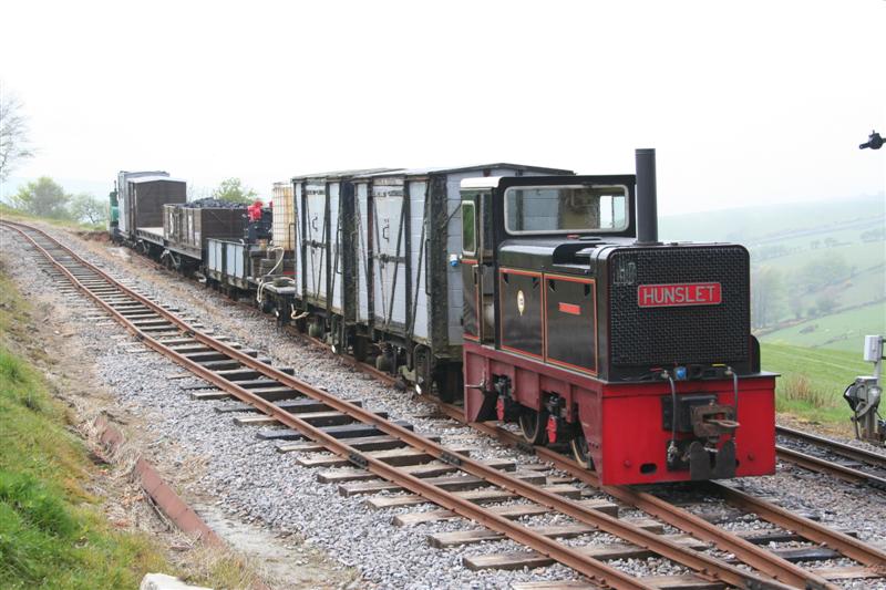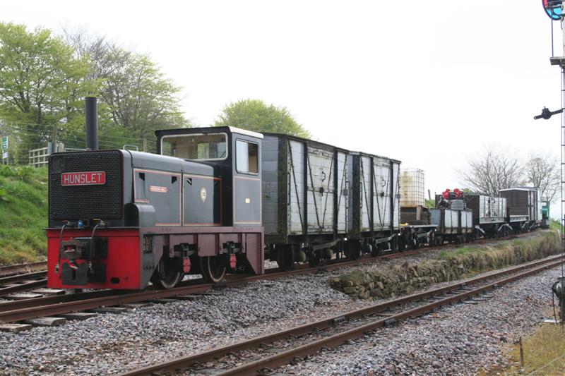 4. Further shunting took place to form wagons up for the demonstration freight train. HEDDON HALL with a siding full of almost every works train wagon during the shunt.