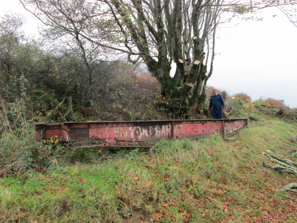 2. Several trees along the hedge line were trimmed and tidied up. The original railway turntable is stored here on the bank above the car park.