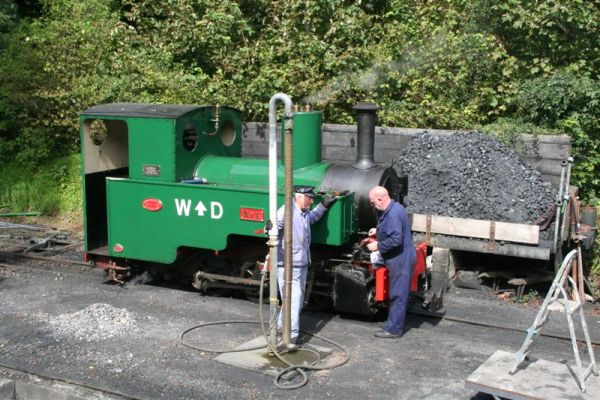 2. Footplate crew Fireman Jim Price and Driver Pete Williams service AXE at the coaling stage.