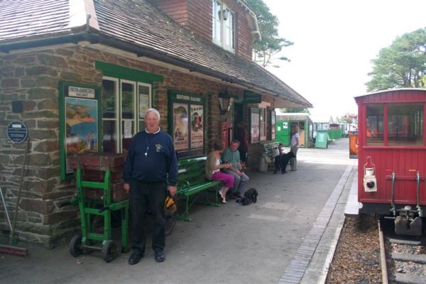 3. Regular Thursday Guard Bob Ayres on the platform at Woody Bay Station.
