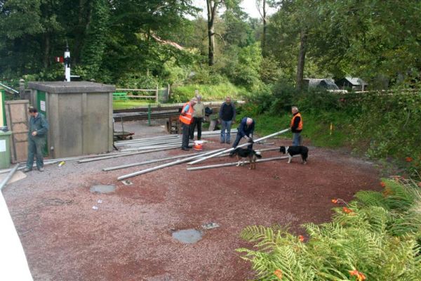 22. Nigel Thompson drives HEDDON HALL right to the end of this siding during the ballasting process.