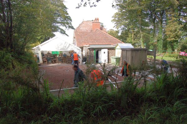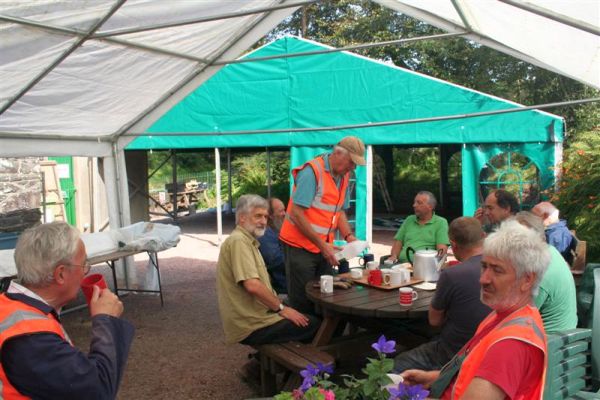 16. At the 3pm tea and cake break, the volunteers relax in the original marquee which will be dismantled next week.