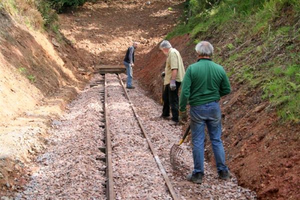 20. Martyn, Tim and Dave level off the tipped ballast along the cesses.