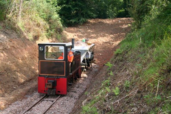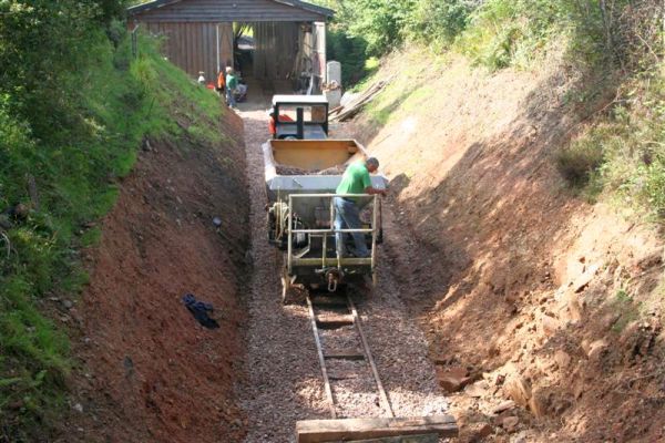 29. AXE can't make Lynton yet! Driver Pete has to halt here. There's no track yet beyond in this cutting!