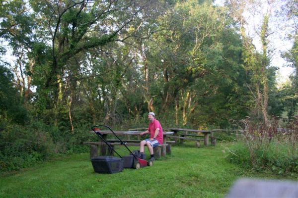 32. Together with the trackbed came the maintenance of Rowley Cross picnic area. During the year L&B volunteers look after the site with some grass mowing and path clearance. Signs and place-mat 'leaflets' help to advertise the L&B at Woody Bay to picnicking visitors.